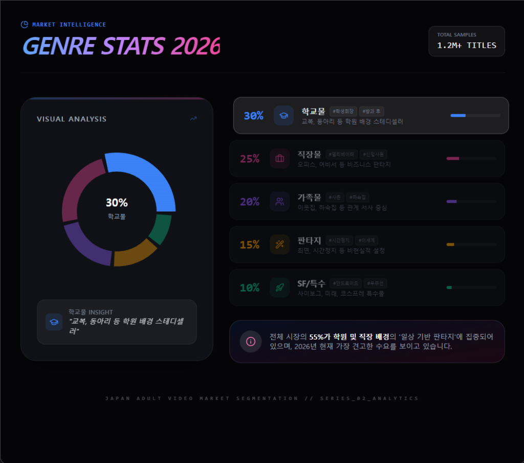 이 그래프는 레전드 일본 야동 장르 세분화 비율을 보여주는 자료로, 학교물과 직장물이 여전히 강세를 보이고 있습니다. 제 시장 분석과 커뮤니티 데이터를 종합한 결과입니다.